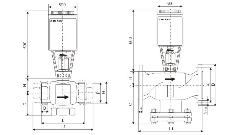 型號 | 規格 | L | H | H1 | D | C | K | n-d | 壓差KPa | 重量(KG) | 行程 |