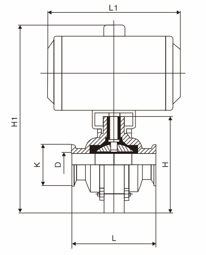 D681氣動衛生級蝶閥主要外形尺寸-PN6~16(6~16bar)